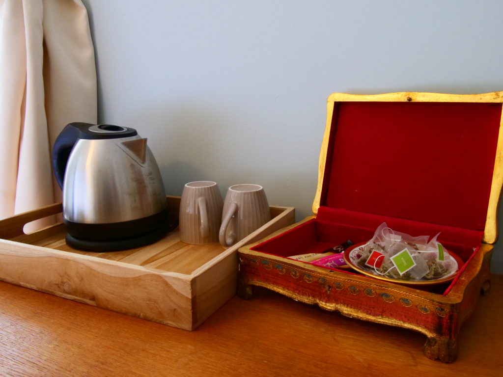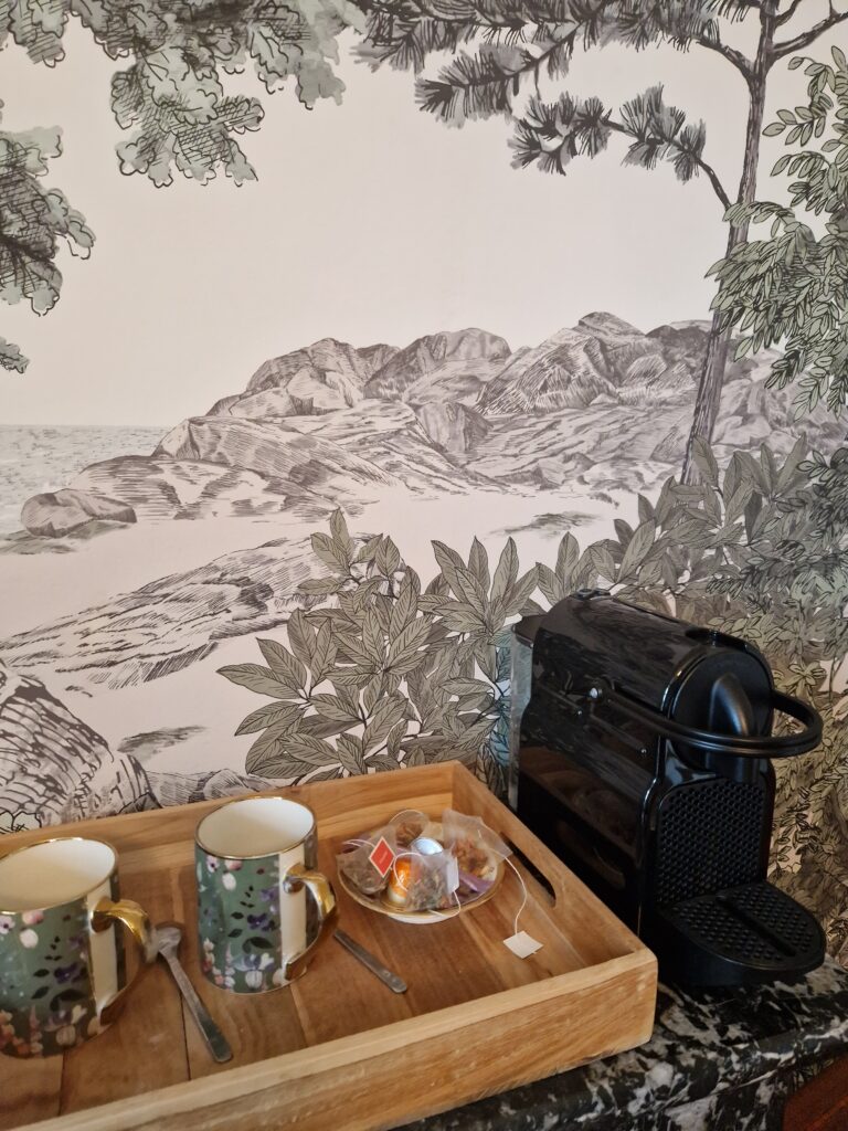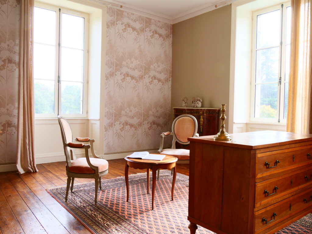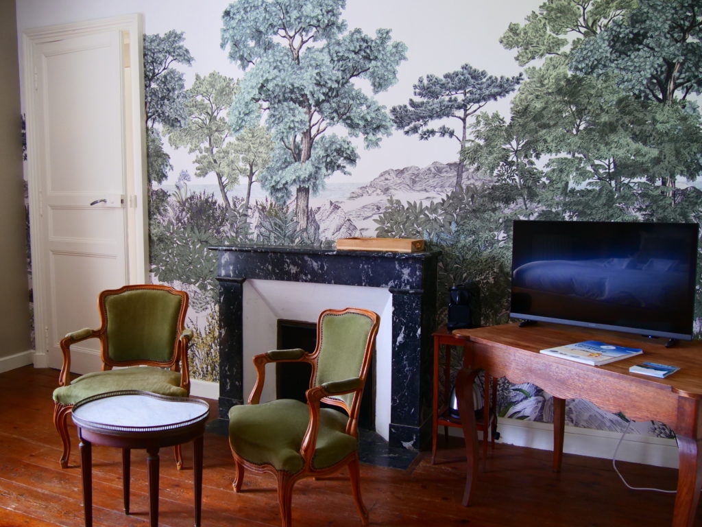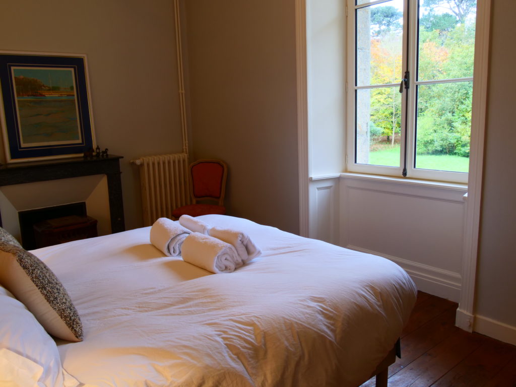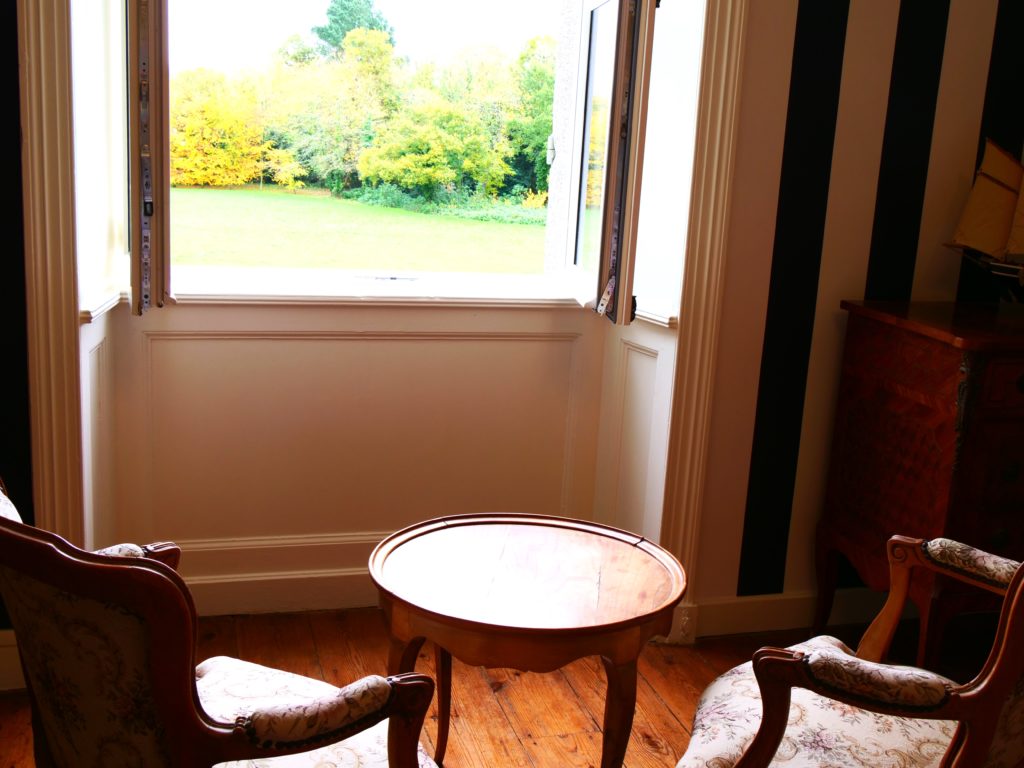 La chambre a une vue imprenable sur le parc. Elle est décorée dans un esprit « maison de famille ». Un petit cocon intimiste.