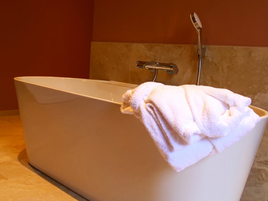 • Salle de bain avec baignoire et douche